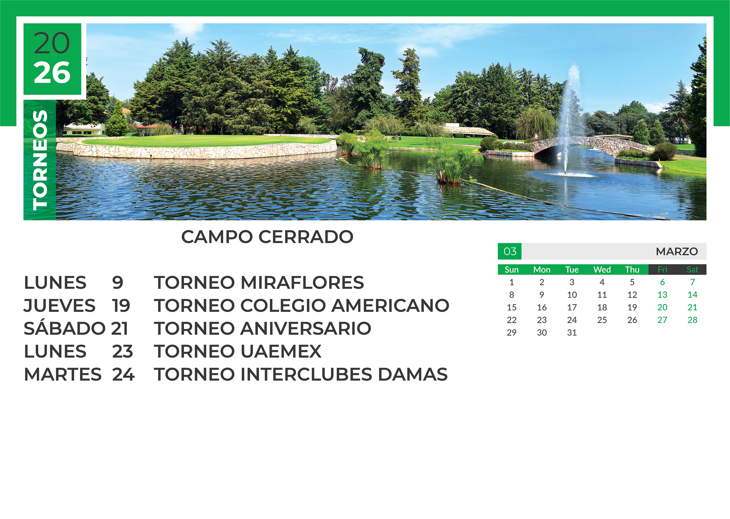 Calendario próximos Torneos de Golf